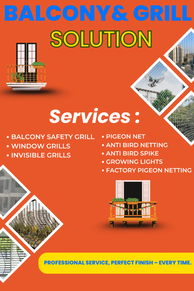 we specialize in delivering smart, safe, and stylish protection solutions for your home, office, and industrial spaces. With a commitment to quality and customer satisfaction, we offer the most trusted and modern options for balcony grills, invisible grills, pigeon netting, anti-bird spikes, and complete bird-proofing systems.